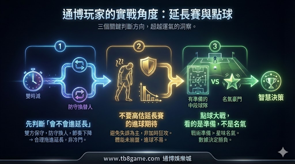 站在通博娛樂城編輯與實戰玩家的角度,這篇文章要談的不是規則介紹,而是——什麼樣的比賽會拖進延長賽?誰在點球大戰更有優勢?哪些判斷是常見陷阱?