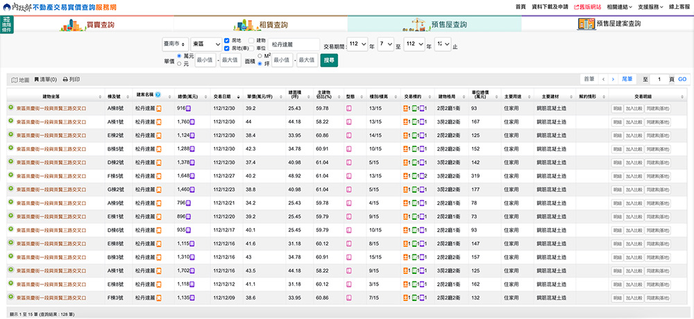松丹達麗 第三季、第四季實登資料。(圖/內政部實價登錄網資料)