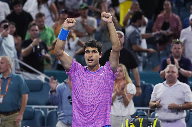 〔記者梁偉銘/綜合報導〕年僅20歲的前世界球王艾卡拉茲(Carlos Alcaraz)近況甚佳,2個6:3擊敗義大利23種子穆塞帝(Lorenzo Musetti),西班牙頭號種子連續第3年躋身邁阿密網賽男單8強,也持續朝著包辦北美「陽光雙冠」的目標邁進。