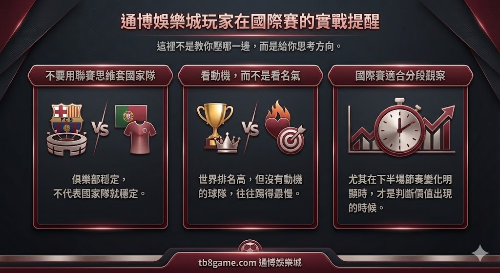 在通博娛樂城的觀察裡,國際賽比起聯賽,更應該看這三點。